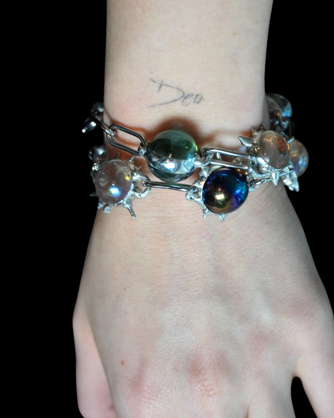 2 in 1 Necklace and Bracelet made with recycled marbles on hypoallergenic Stainless steel chain.