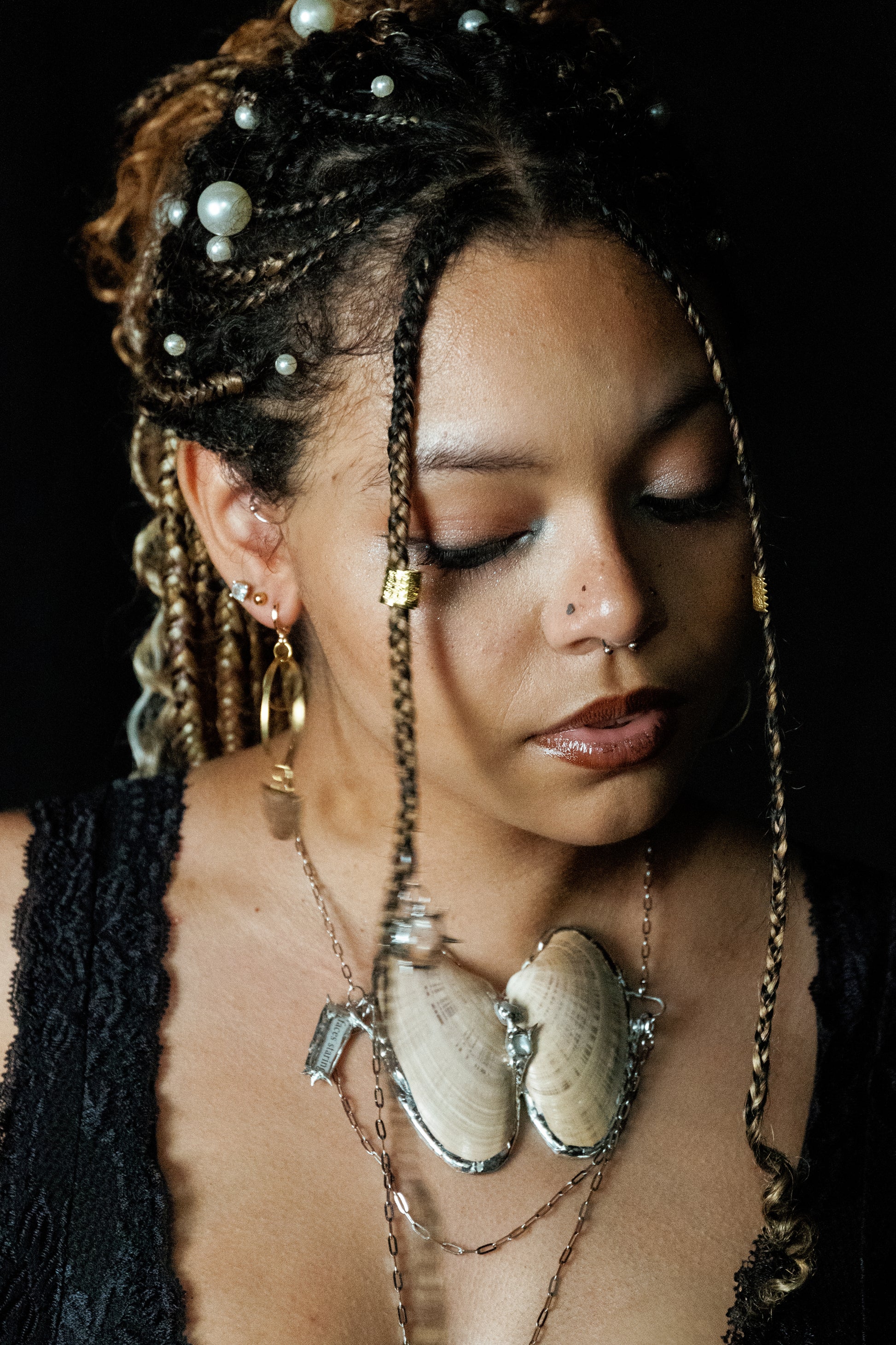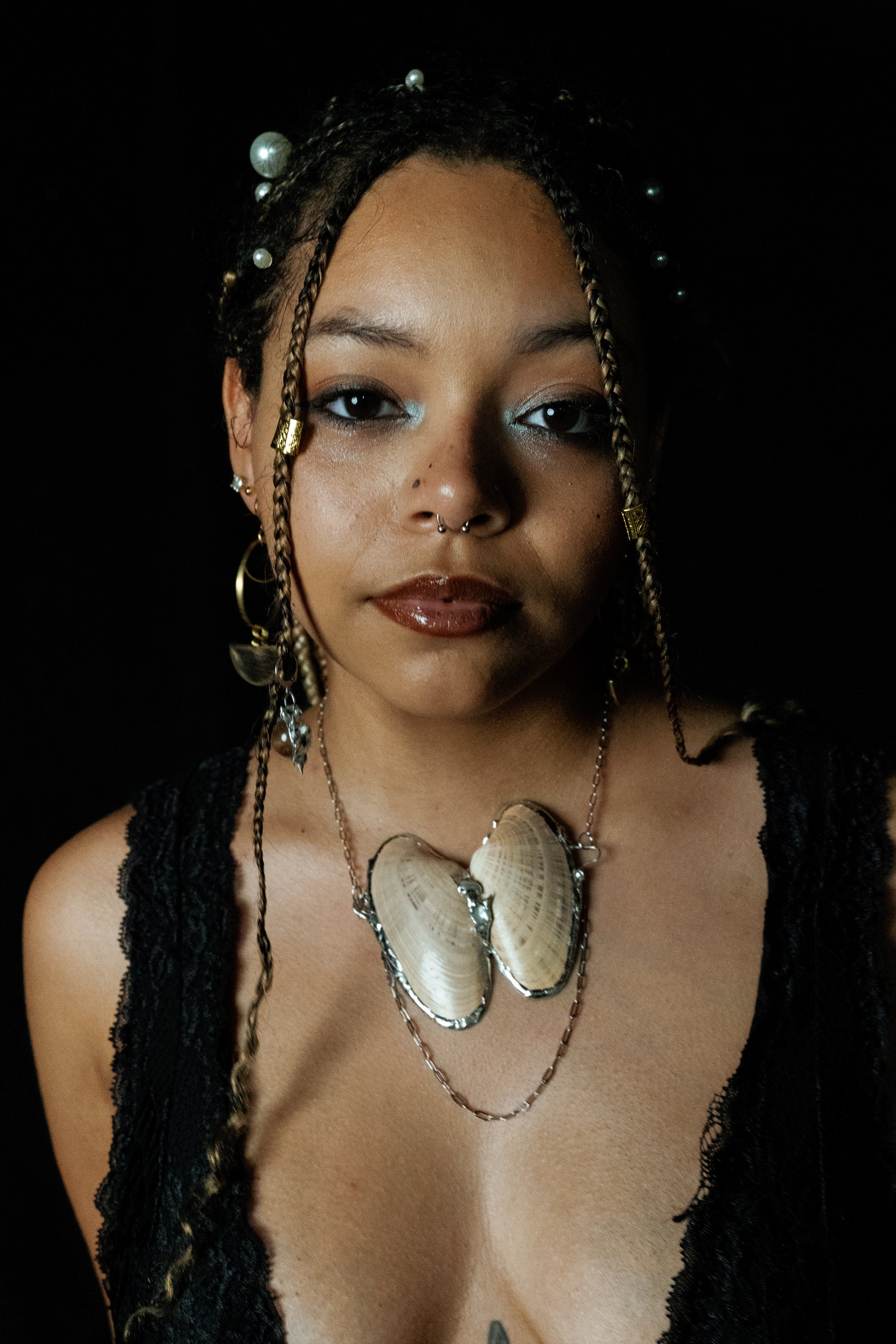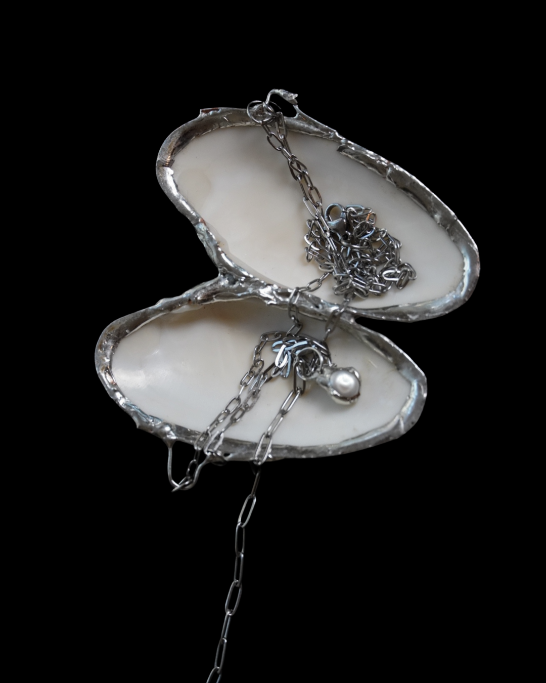 One of a kind necklace made with genuine shells and pearls, linked together with lead free solder on a stainless steel chain. Shells protect and nurture; pearls symbolize wisdom and purity. Together, they honor the interconnectedness of life’s treasures.